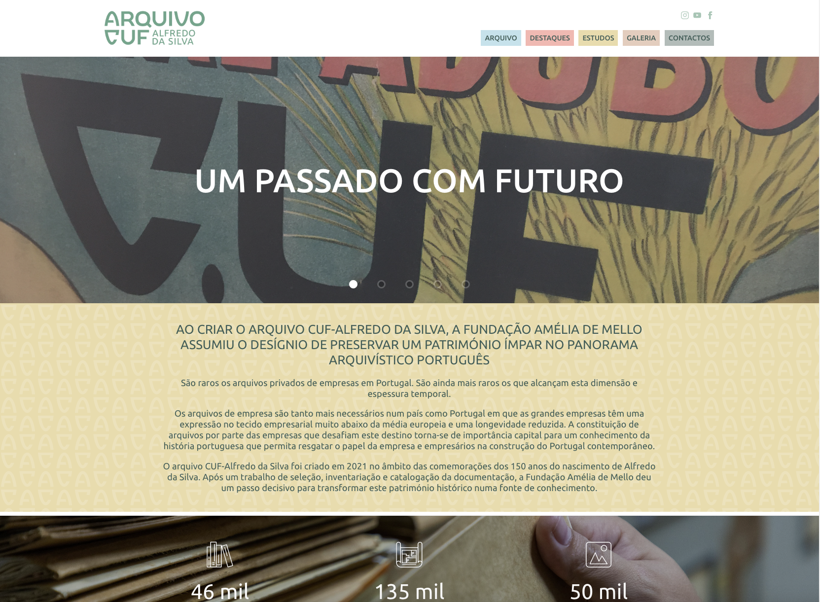 O site do arquivo CUF-Alfredo da Silva tem como objectivo alojar os conteúdos relativos ao arquivo com o mesmo nome. O arquivo em questão foi criado em 2021 no âmbito das comemorações dos 150 anos do nascimento de Alfredo da Silva. Nascido em 1871 e falecido em 1942, Alfredo da Silva foi um importante empresário português responsável por fundar grandes empresas nacionais como a Companhia União Fabril (CUF), Tabaqueira, Estaleiro da Rocha do Conde de Óbidos (ou, como ficou conhecida mais tarde, Lisnave), Banco Totta e Companhia de Seguros Império.