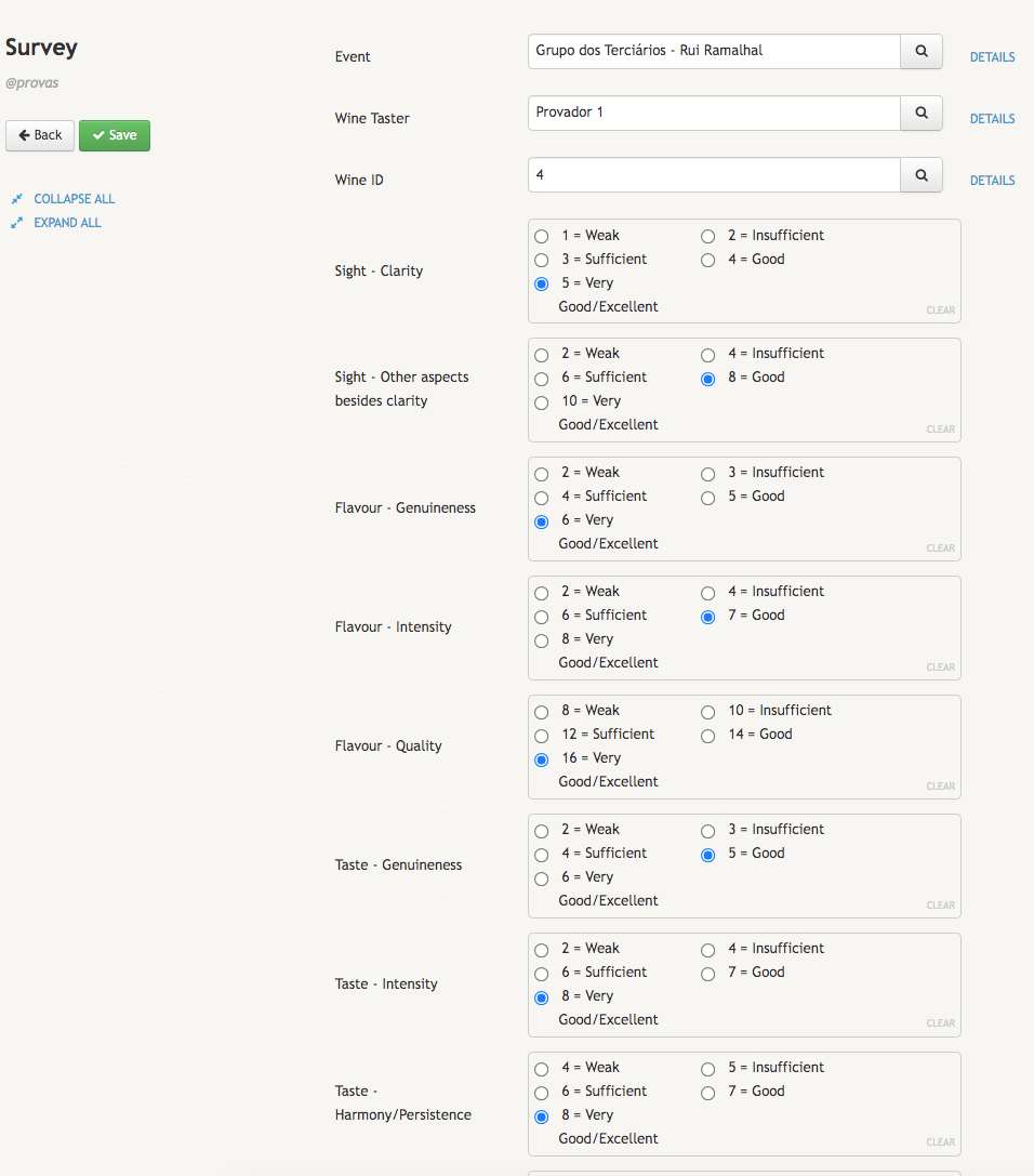 | Description | An online survey application where participants can evaluate the wines they tasted in a wine tasting event. |